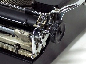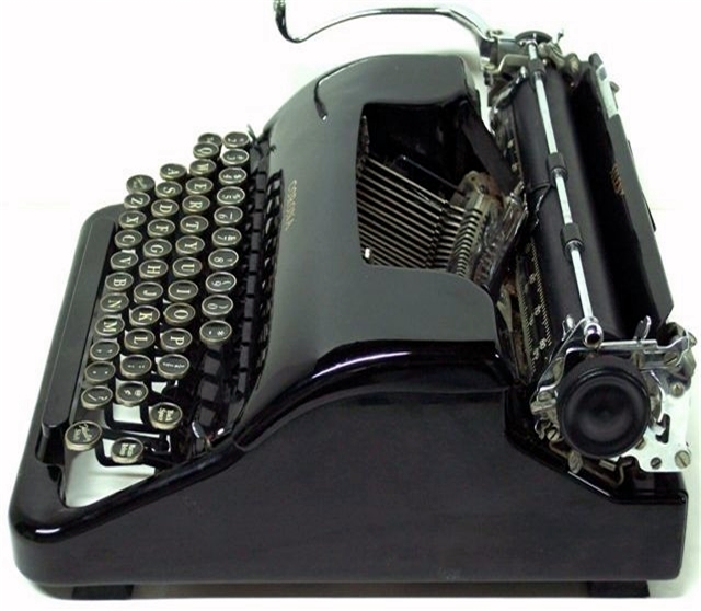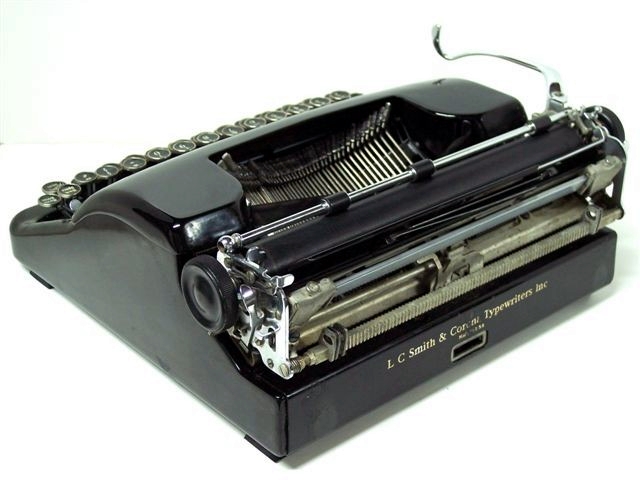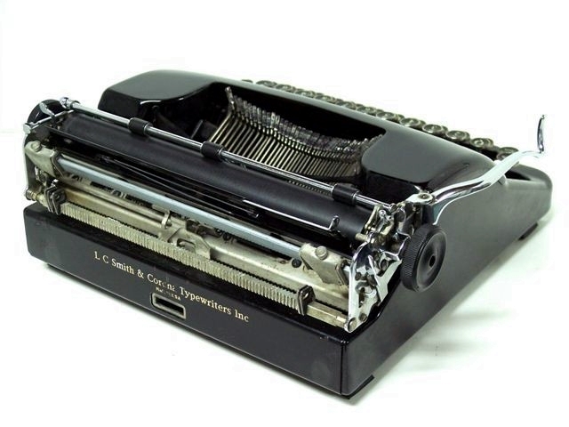In 1939, Smith-Corona's "Flattop" style portable was updated with the addition of the "Speedline" design (the flat top design remained in production). Smith-Corona built on this design for quite a few years to come, but then, why not? It is lovely. |