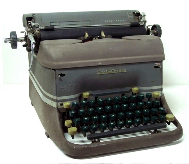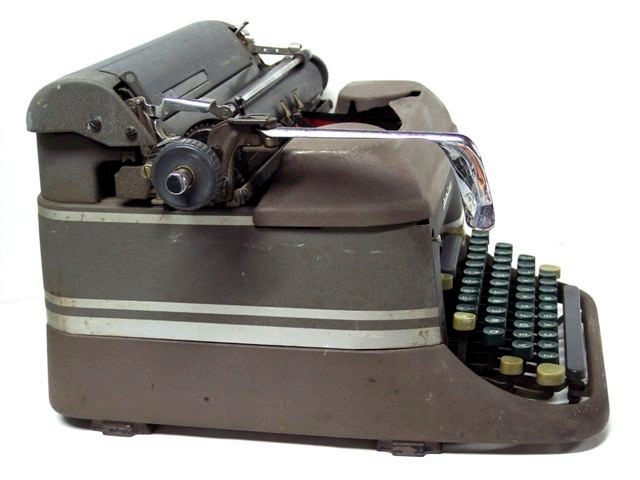 This is one of the several "beauty is in the eye of the beholder" typewriters in the collection. She has her dignity intact, but like Scarlett O'Hara at the end of "Gone with the Wind", she has little more left than her genteel poverty. She needs much more cleaning, obviously, and the textured paint has rubbed thin and smooth in many areas. Painting this Superspeed some gleaming, smooth color is an appealing option limited mainly by the silver bands and the decals that may be difficult to protect or replace.